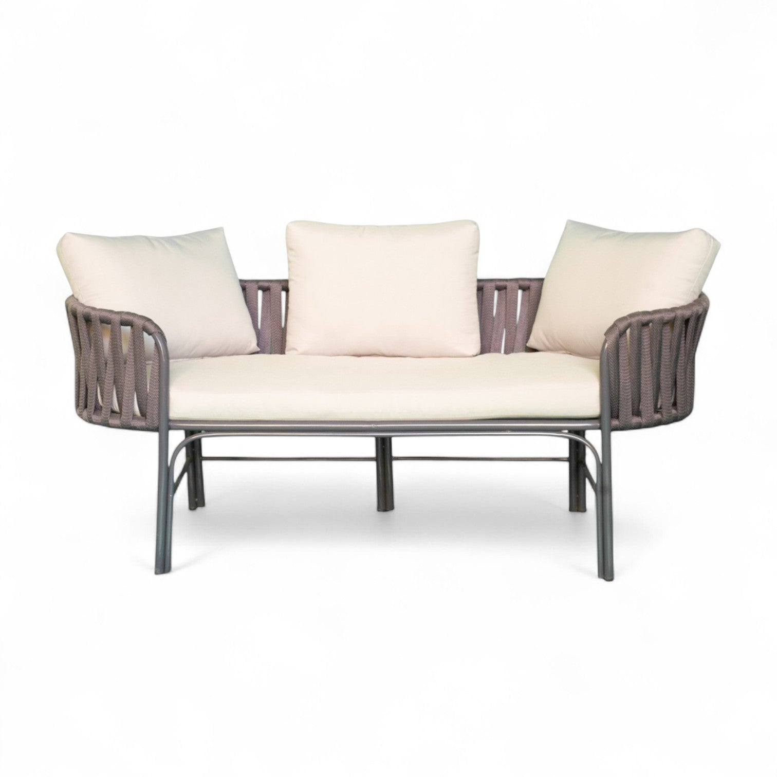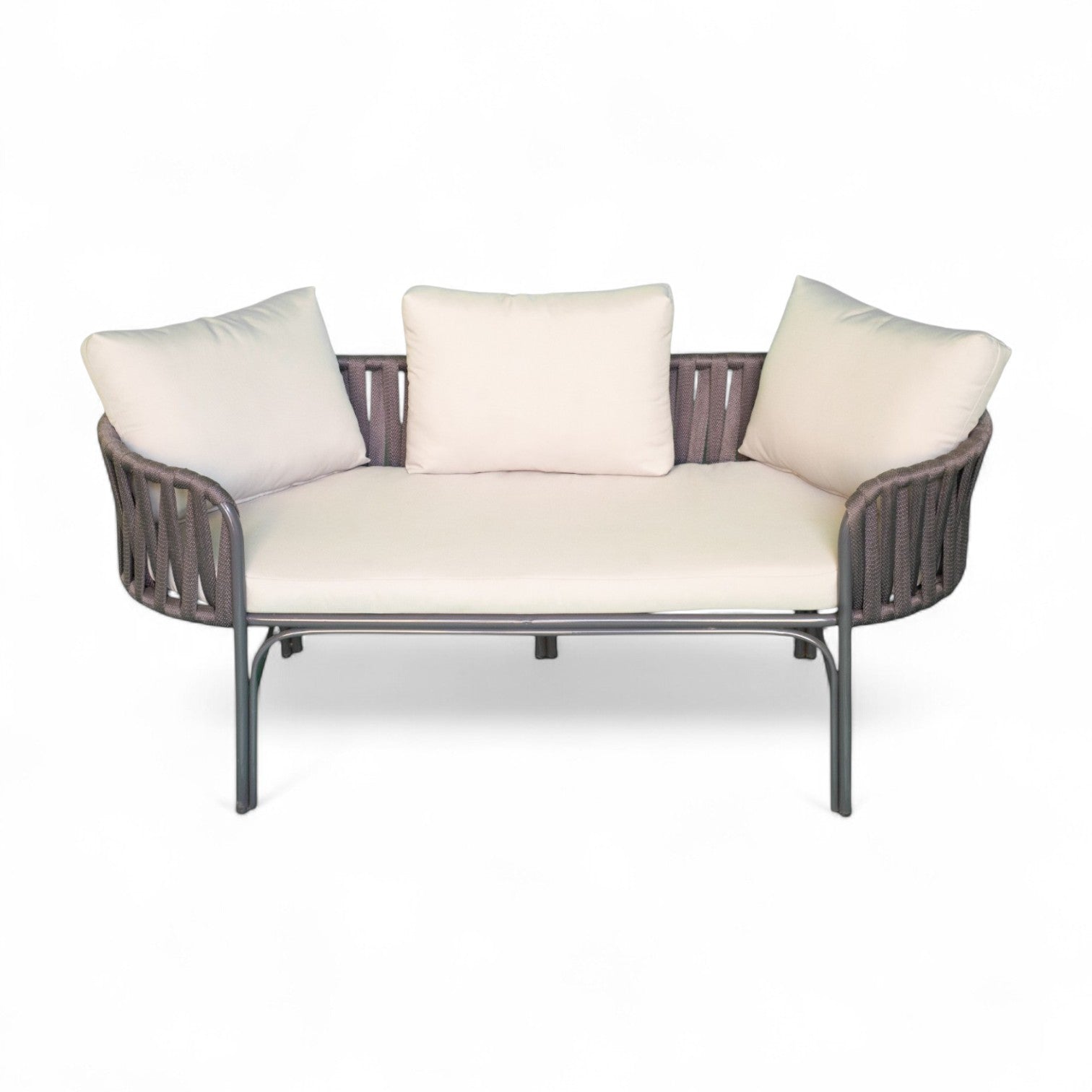 راحة وأناقة مع تصميم عصري على الآخر! كنبة دريم بتجمع بين الشكل الحلو والراحة اللي مش هتلاقيها في أي كنبة تانية. الجوانب معمولة من حبال مجدولة بطريقة مودرن شيك، والوسائد بيچ ناعمة وبتخليك تعيش جو الاسترخاء على طول. تناسب كل مكان من بره وجوه، سواء في الحديقة، التراس، أو حتى ركن هادي وجميل جوه البيت.