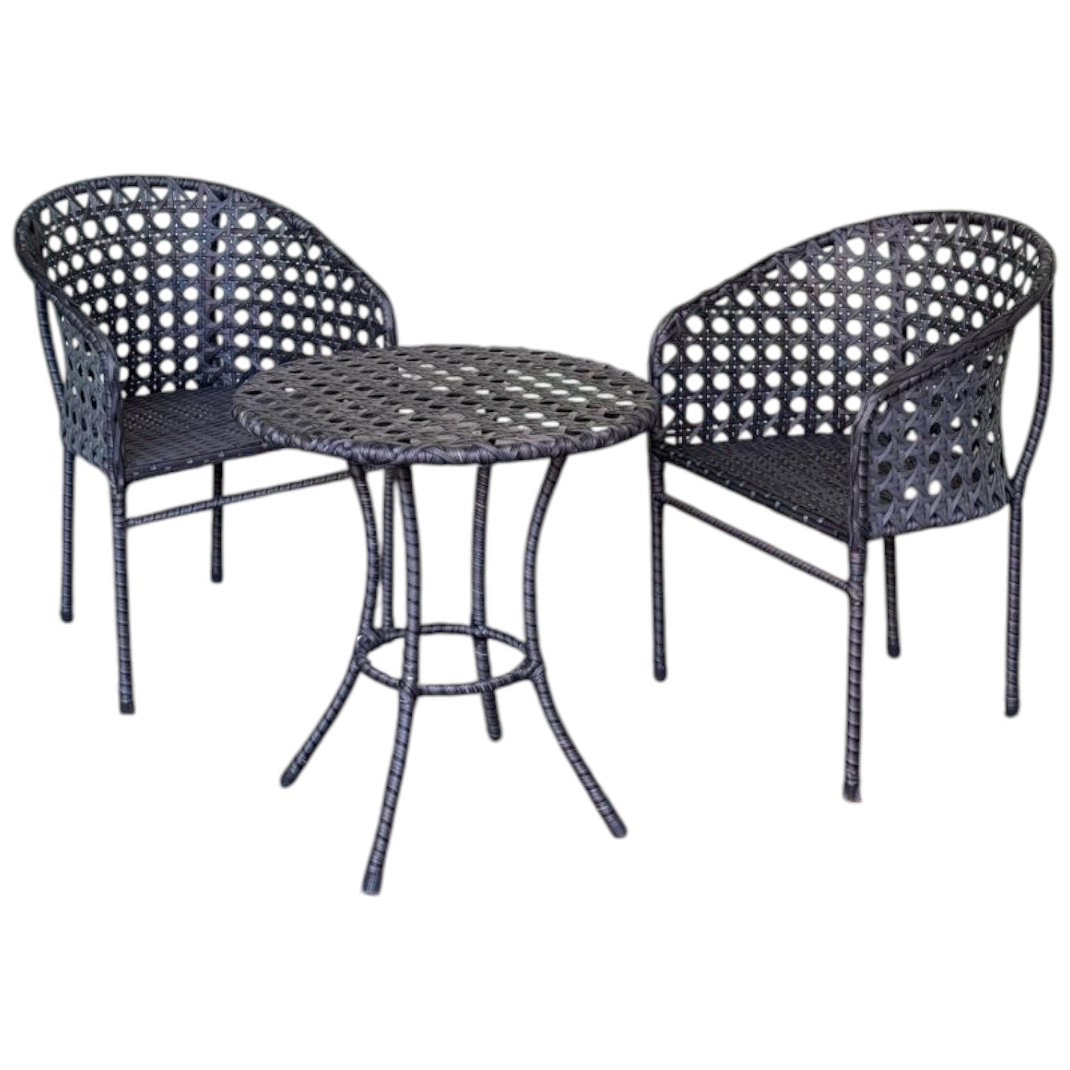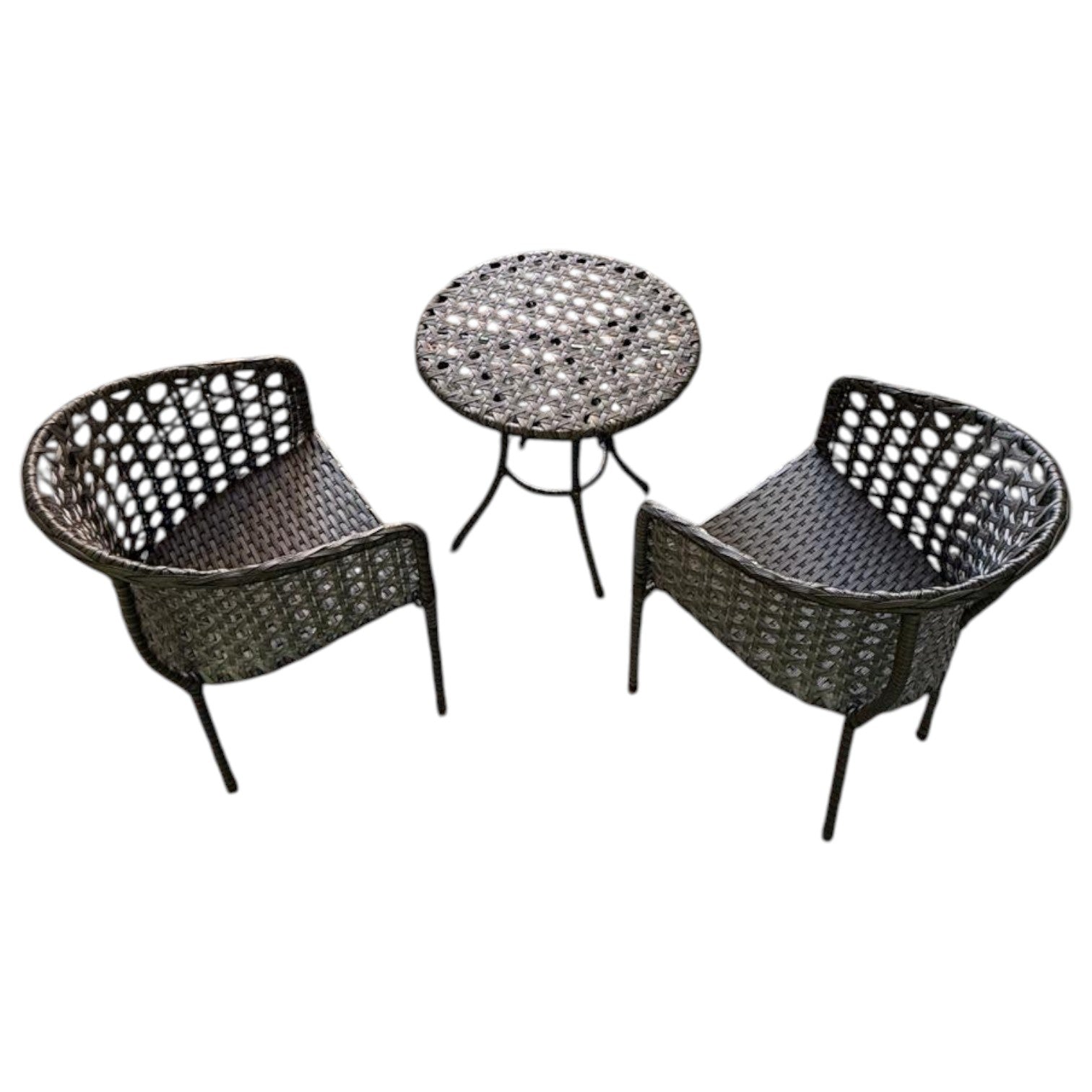طقم صغير عملي وأنيق مكوّن من 2 كرسي + ترابيزة مربعة، مثالي للبلكونات الضيقة أو التراسات الصغيرة. تصميم بسيط وخامات متينة من الرتان الصناعي وهيكل معدني مطلي ضد الصدأ، يتحمّل الاستخدام الخارجي بسهولة.