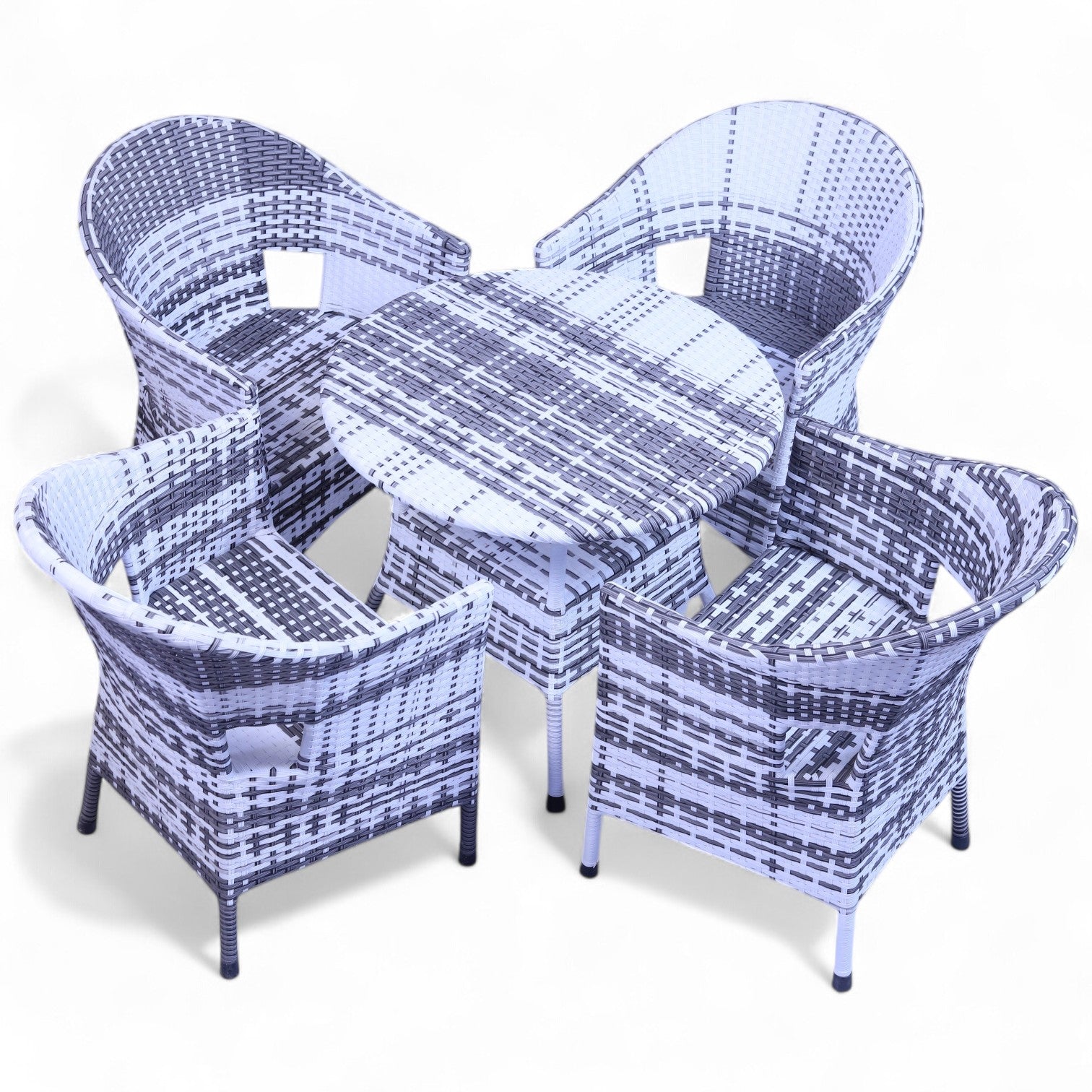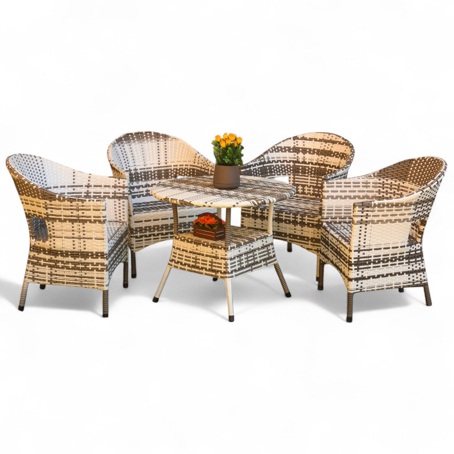طقم حوض بيجمع بين الراحة والتصميم العملي، مثالي لجلسات الحديقة أو المساحات الخارجية. مكوّن من أربع كراسي مريحة وترابيزة دائرية، مصممة لتتحمل الجو الخارجي وسهلة التنضيف.