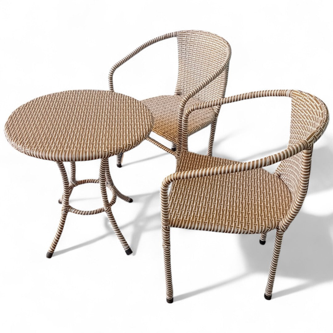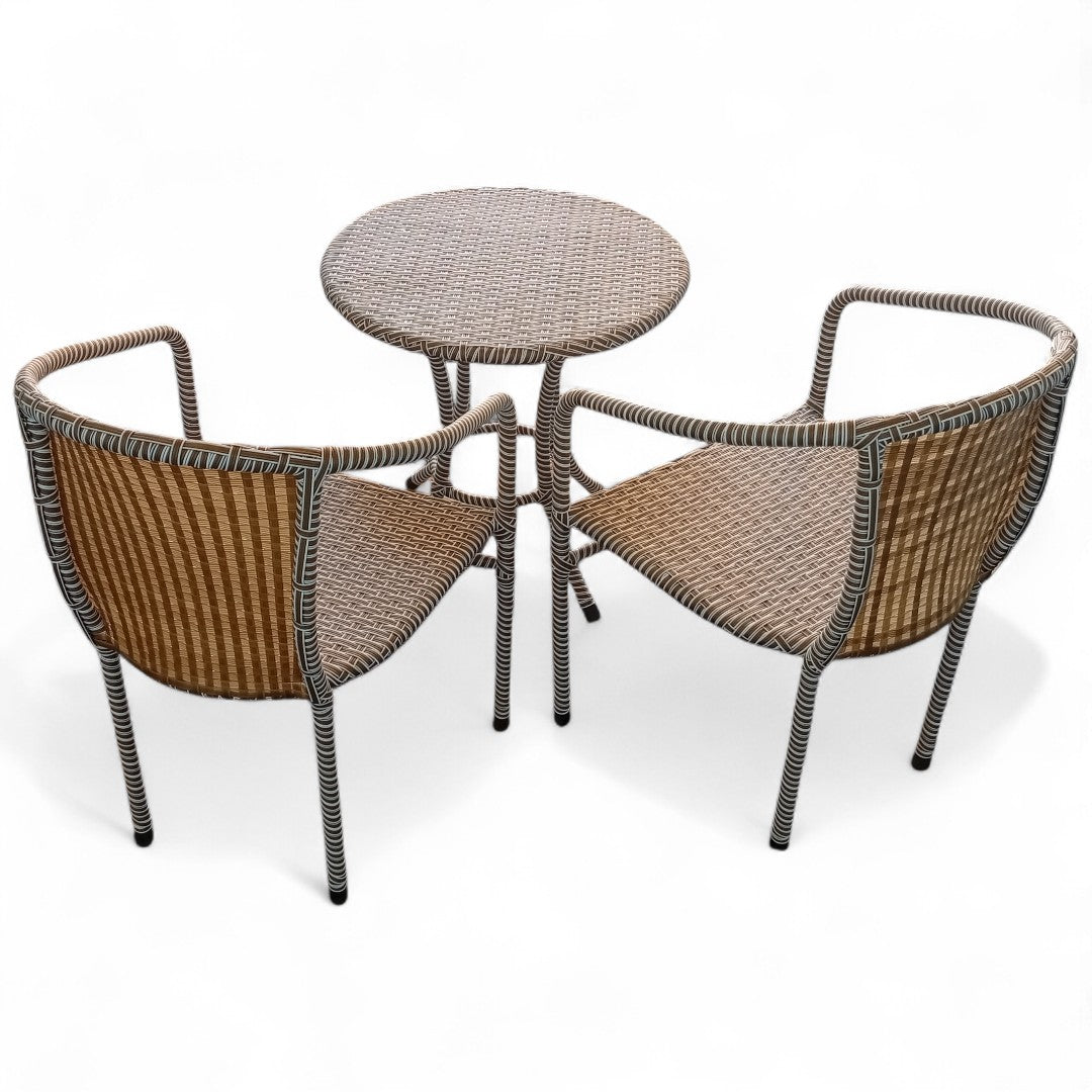 لو عندك بلكونة أو ركن صغير في الجنينة وعاوز تظبطه بجلسة خفيفة وشيك، يبقى طقم ميني بيسترو هو الحل. الطقم مكوّن من 2 كرسي منخفض + ترابيزة دائرية، وهيكل معدني مطلي بالكتروستاتيك، مع رتان صناعي مجدول يدويًا بلمسة طبيعية أنيقة.