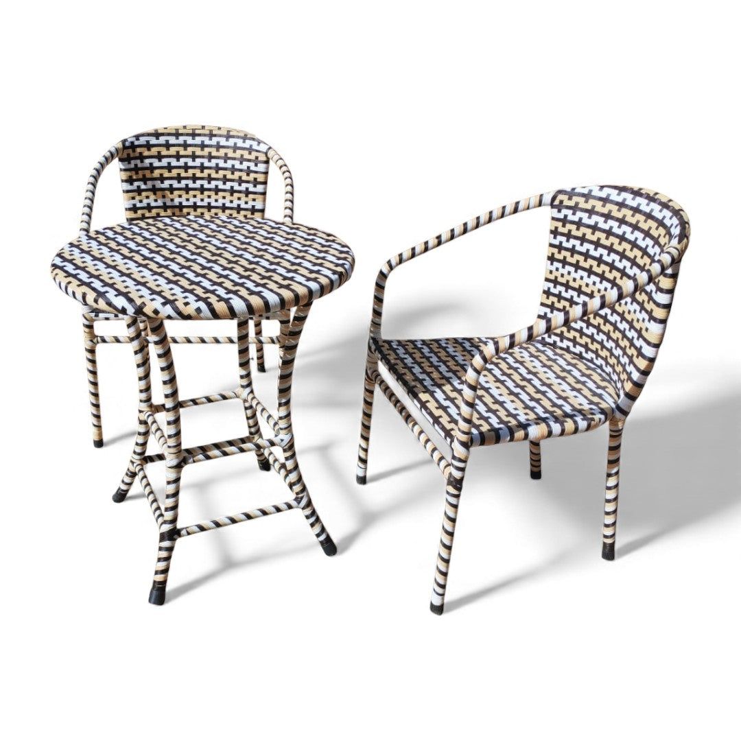 لو عندك بلكونة أو ركن صغير في الجنينة وعاوز تظبطه بجلسة خفيفة وشيك، يبقى طقم ميني بيسترو هو الحل. الطقم مكوّن من 2 كرسي منخفض + ترابيزة دائرية، وهيكل معدني مطلي بالكتروستاتيك، مع رتان صناعي مجدول يدويًا بلمسة طبيعية أنيقة.