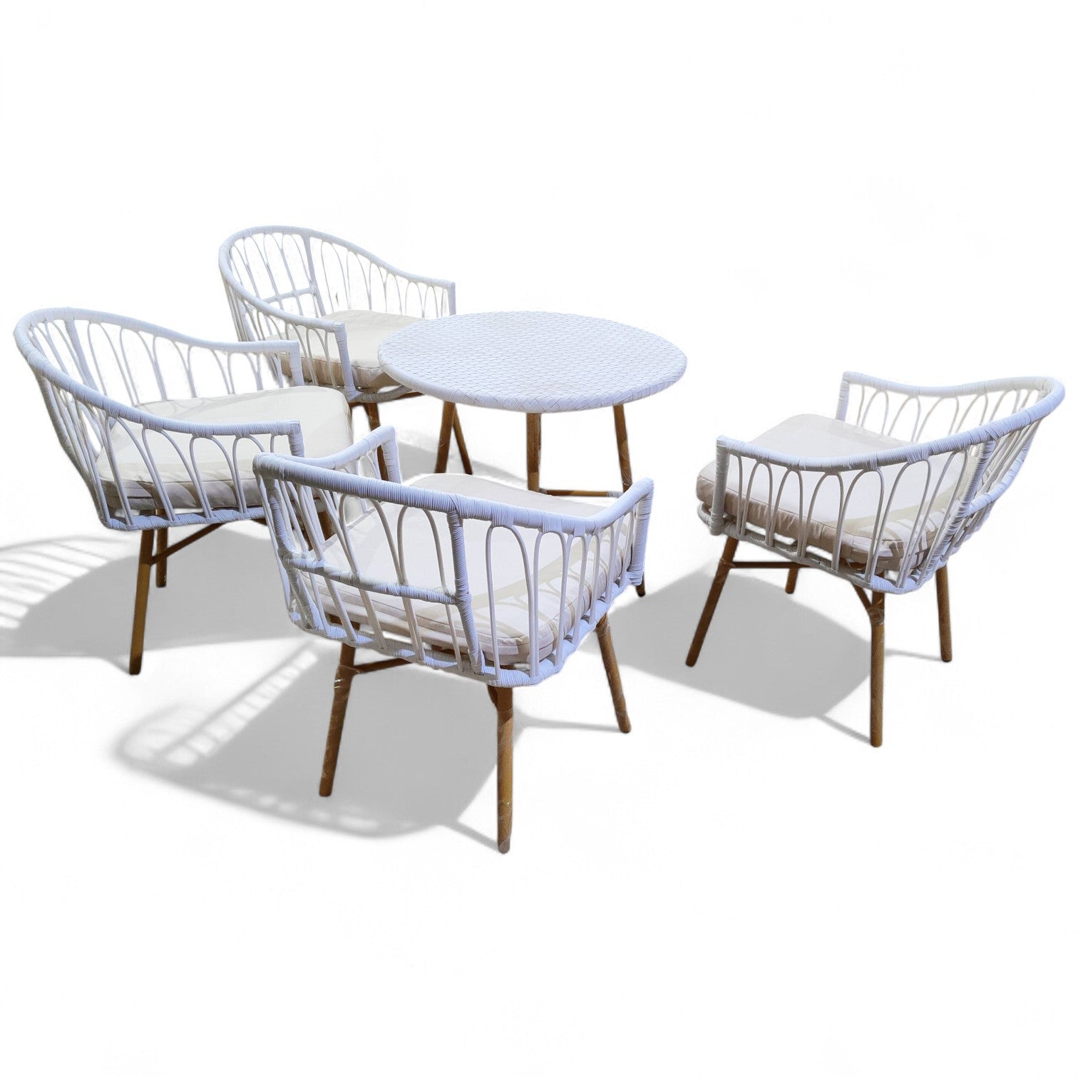 طقم Sony عملي وأنيق، مثالي للجلسات في الحديقة أو المساحات الخارجية. مكوّن من أربع كراسي مريحة وترابيزة دائرية، مصمم ليتحمل الاستخدام اليومي والظروف الجوية المختلفة.